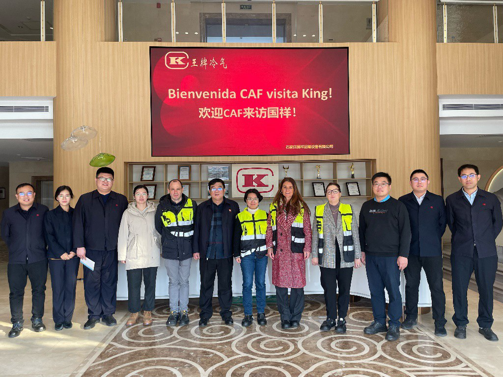 On March 14th, a delegation from CAF Spain, a leading railway vehicle manufacturer ranked fifth in the world, paid a visit to Shijiazhuang King. The delegation included the HVAC subsystem’s lead buyer, the HVAC supplier quality manager, the metro platform HVAC lead engineer, and Chinese representatives from CAF Spain. The purpose of their visit was to gain a comprehensive understanding of various aspects of Shijiazhuang King.